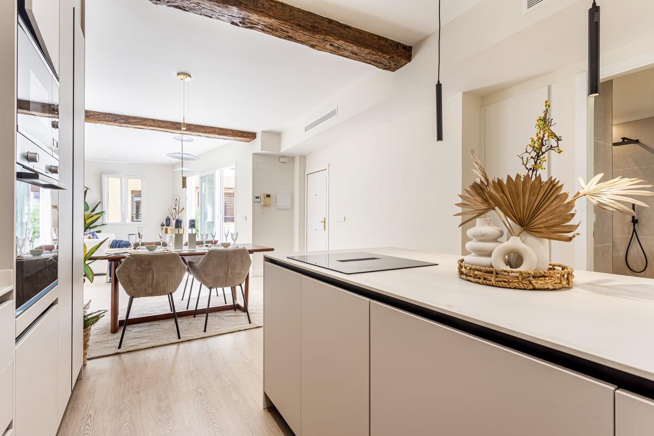 Reforma integral en ático dúplex para transformarlo en dos viviendas independientes. Cada una de ellas ha sido diseñada con un estilo moderno y funcional, destacando un amplio espacio de salón-comedor con cocina integrada en concepto abierto, que se conecta directamente con una espectacular terraza con vistas panorámicas. La distribución se completa dos acogedoras habitaciones, y dos elegantes baños uno de ellos en suite, creando un hogar luminoso, y con un encanto único.